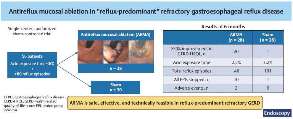 Role of antireflux mucosal ablation in “reflux-predominant” refractory gastroesophageal reflux disease: a randomized sham-controlled trial